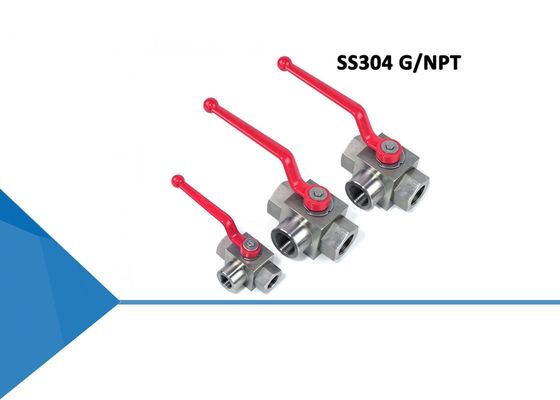 SS304 Trójdrożny zawór kulowy ze stali nierdzewnej Gwint G / NPT Hydrauliczny wysokociśnieniowy wodny zawór kulowy